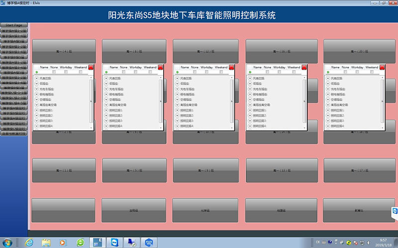車(chē)庫(kù)定時(shí)照明控制見(jiàn)圖(3),在此功能界面下每個(gè)區(qū)域都可以進(jìn)行定時(shí)控制。