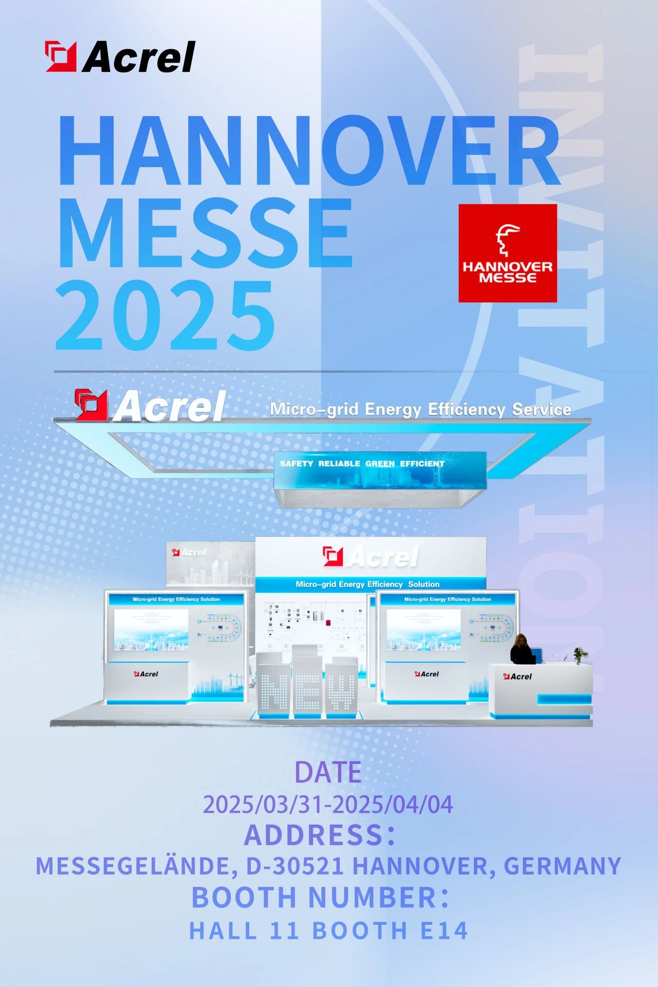 Acrel sincerely invites you and your company representatives to visit our booth at Hannover Messe2025 in Germany. As the top event in the field of global industrial technology, this exhibition is themed "Innovation and Sustainable Development of Industrial Transformation", bringing together the world's top manufacturers, technical experts and industry leaders to explore the cutting-edge trends of future industrial development.