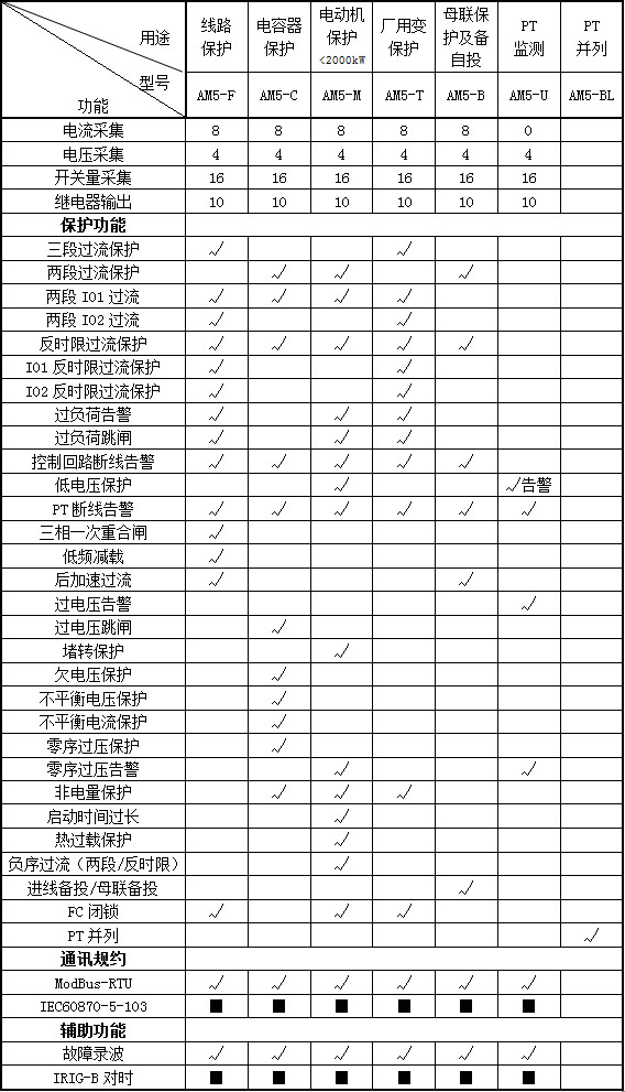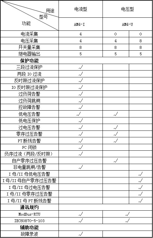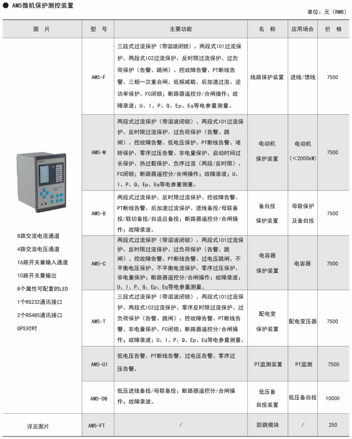AM系列微機(jī)保護(hù)測(cè)控裝置集保護(hù)、測(cè)量、控制于一體,適用于35kV及以下電壓等級(jí)的用戶終端變電站(所),可實(shí)現(xiàn)用戶變電站的保護(hù)和測(cè)控。