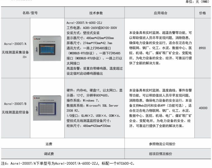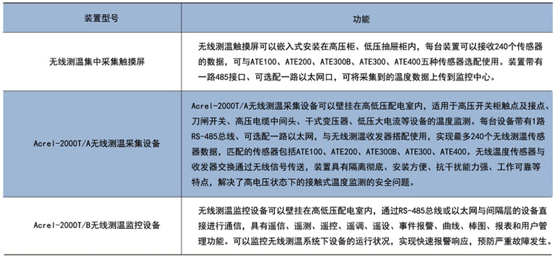 綜上所述,確定型號(hào)為:無(wú)線(xiàn)測(cè)溫集中觸摸屏:AARTM-7062HT-4(HI),1臺(tái);無(wú)線(xiàn)測(cè)溫傳感器:ATE200,90個(gè);無(wú)線(xiàn)測(cè)溫收發(fā)器:ATC200,10個(gè)