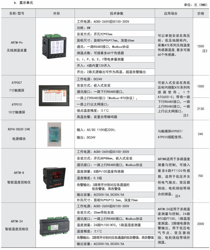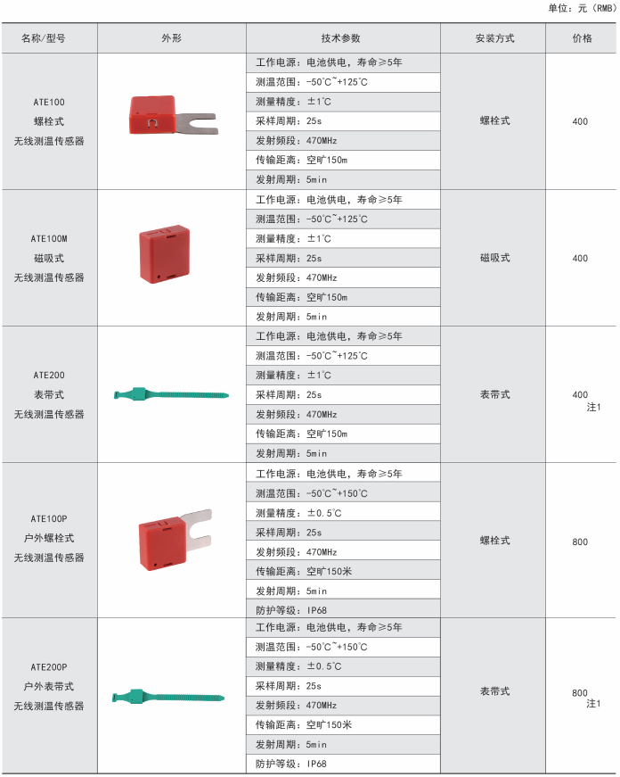 綜上所述,確定型號(hào)為:無(wú)線(xiàn)測(cè)溫裝置:ARTM-P9-300,1臺(tái);無(wú)線(xiàn)測(cè)溫傳感器:ATE300,9個(gè)