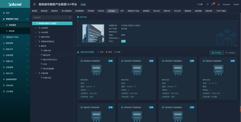 主要展示的內(nèi)容有:項目概況、設(shè)備狀態(tài)、設(shè)備分類、設(shè)備報警信息、報警分類、報警統(tǒng)計、設(shè)備臺賬信息等。其中百度地圖可以選配成BIM建筑模型,任何傳感器報警時可以在BIM模型中預(yù)警顯示。