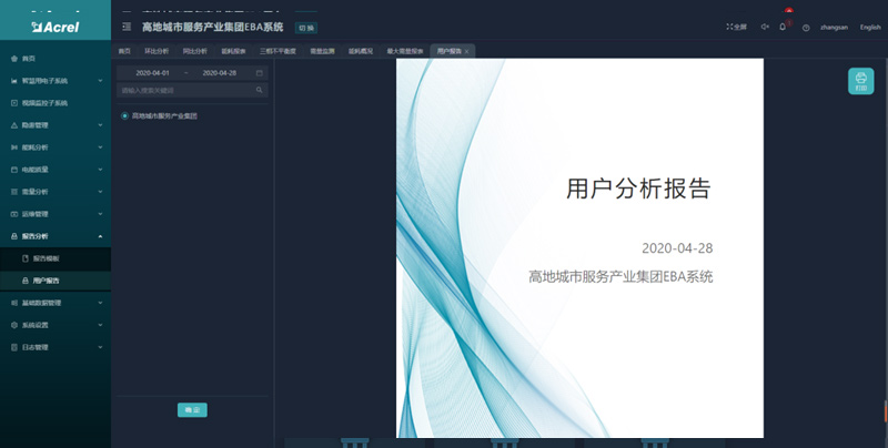 用戶報告:系統(tǒng)按項目提供一個月內(nèi)的用戶分析報告,并支持打印。