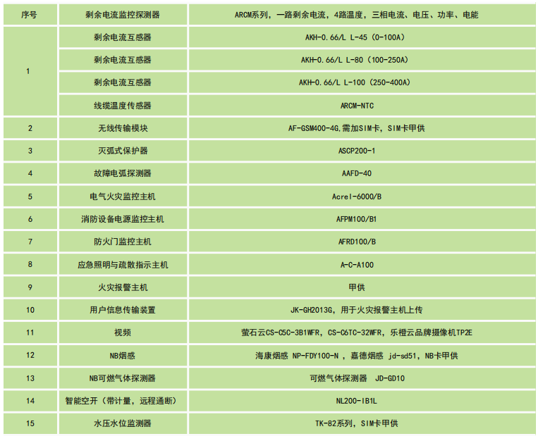 可接入電氣火災(zāi)、故障電弧、電氣火災(zāi)主機、滅弧式保護器探測和母排無線測溫探測等。