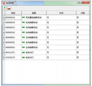 定點疏散功能允許有管理員權(quán)限的用戶在緊急情況下手動啟動報警點,根據(jù)實際火警信息提供疏散預(yù)案以外的疏散路徑。在工具欄中點擊“定點疏散”,如圖11所示,可對當(dāng)前圖層設(shè)備點進(jìn)行手動點亮。在“方向”一欄雙擊,可選擇指示燈點亮方向;在“閃爍”一欄雙擊,可選擇燈具是否閃亮,默認(rèn)為長亮。允許同時對多個設(shè)備設(shè)置點亮方向和閃亮模式。