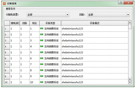 工具欄中點擊“搜索設(shè)備”,如圖14所示。在分配電裝置和回路的下拉菜單欄中選擇所需的裝置和回路。雙擊某條設(shè)備信息,可直接在疏散平面圖中定位到該設(shè)備。