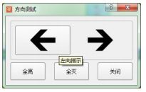 方向測試窗口如圖21所示,是為了檢測指示燈具安裝方向的正確性和一致性,即指示燈具安裝完成后,需檢查指示燈具安裝的方向與定義的方向是否一致。直接單擊某個方向,該方向的箭頭將變?yōu)榫G色,同時該方向的指示燈應(yīng)全部點亮。