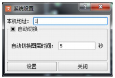 系統(tǒng)設(shè)置窗口如圖22所示,可設(shè)置當(dāng)前本機的地址編號和圖層的自動切換及時間。本機地址編號用于CAN通訊地址設(shè)定;自動圖層的切換,則可以查看不同的疏散分區(qū)狀態(tài)。