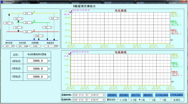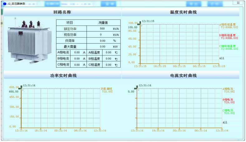 系統(tǒng)對配電系統(tǒng)總進(jìn)線、主變壓器、重要負(fù)荷出線的運(yùn)行狀態(tài)進(jìn)行在線實(shí)時監(jiān)視,用曲線顯示電流、變壓器運(yùn)行溫度、有功需量、有功功率、視在功率、變壓器負(fù)荷率等運(yùn)行趨勢,分析變壓器負(fù)荷率及損耗,方便運(yùn)行維護(hù)人員及時掌握運(yùn)行水平和用電需求,確保供電安全可靠。