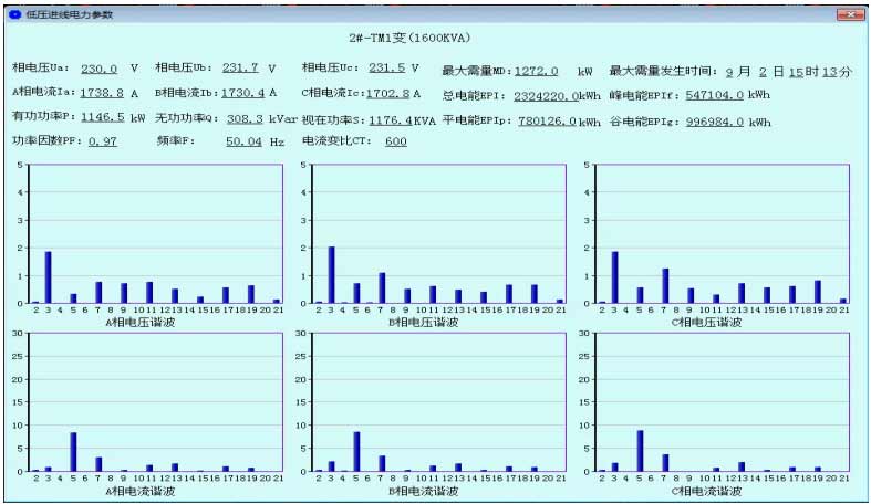系統(tǒng)可以對整個配電系統(tǒng)范圍內(nèi)的電能質(zhì)量進(jìn)行持續(xù)性的監(jiān)測,運(yùn)行維護(hù)人員可以通過諧波分析棒圖、報(bào)表掌握進(jìn)線、變壓器、重要回路的電壓、電流諧波畸變率、諧波含量、電壓不平衡度等,及時采取相應(yīng)的措施,降低諧波損耗,減少因諧波造成的異常和事故(該功能需要選配帶諧波監(jiān)測功能的電力儀表,不需要可刪除。