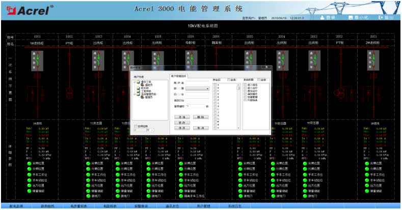 系統(tǒng)為保障系統(tǒng)安全穩(wěn)定運(yùn)行,設(shè)置了用戶權(quán)限管理功能。通過用戶權(quán)限管理能夠防止未經(jīng)授權(quán)的操作(如配電回路名稱修改等)?梢远x不同級別用戶的登錄名、密碼及操作權(quán)限,為系統(tǒng)運(yùn)行、維護(hù)、管理提供可靠的安全保障。