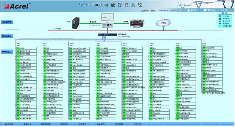 Acrel-3000電能管理系統(tǒng)通常采用分層分布式結(jié)構(gòu)進(jìn)行設(shè)計(jì),即現(xiàn)場設(shè)備層、網(wǎng)絡(luò)通訊層和站控管理層: